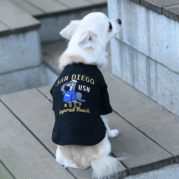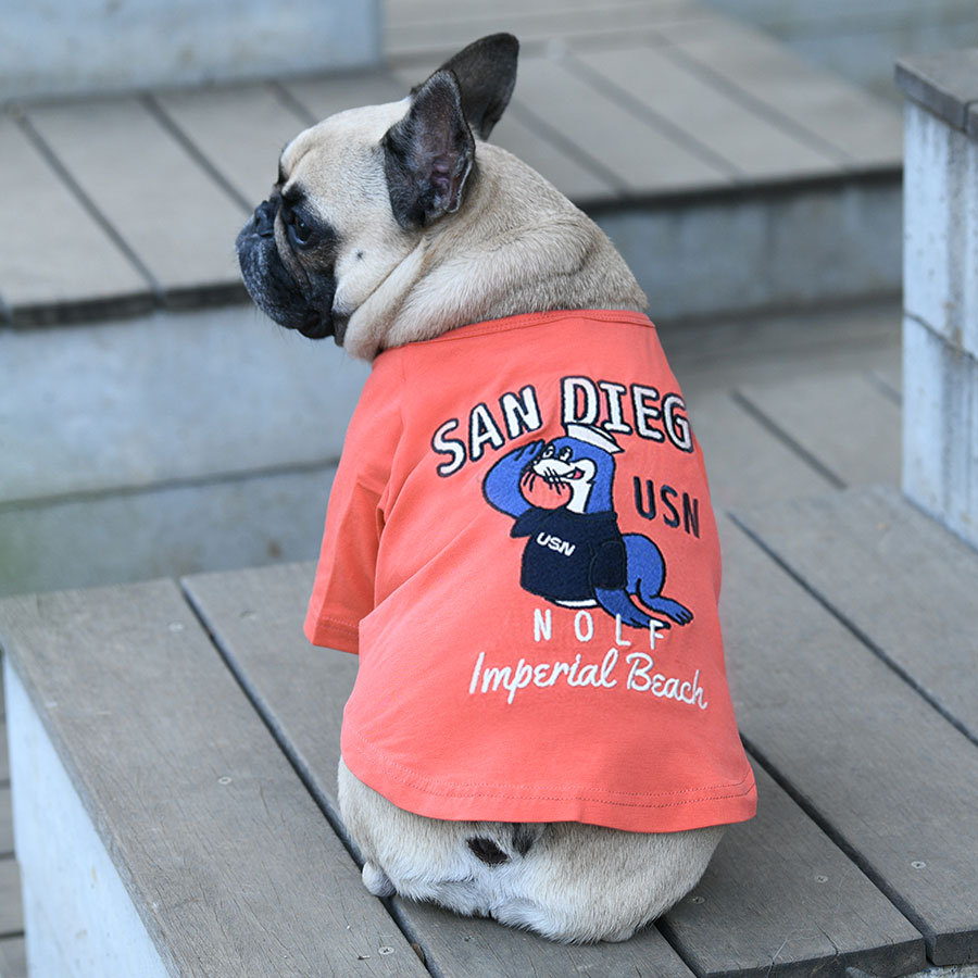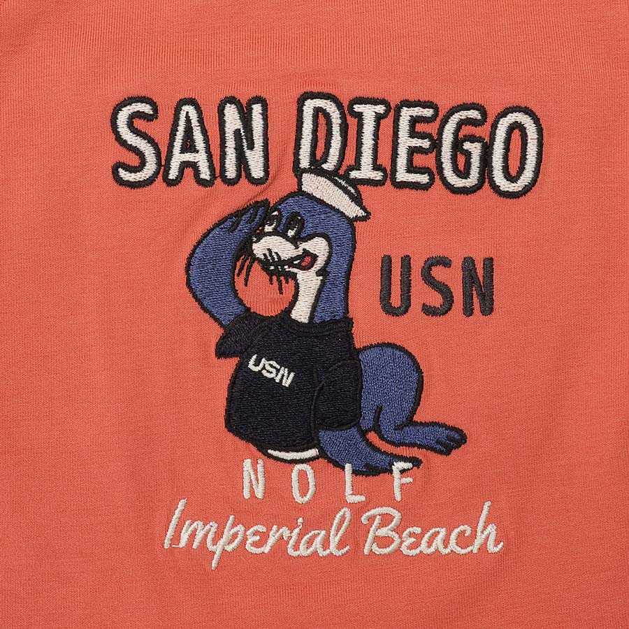 シーライオンの刺繍が目を引く、インパクトある一枚です。